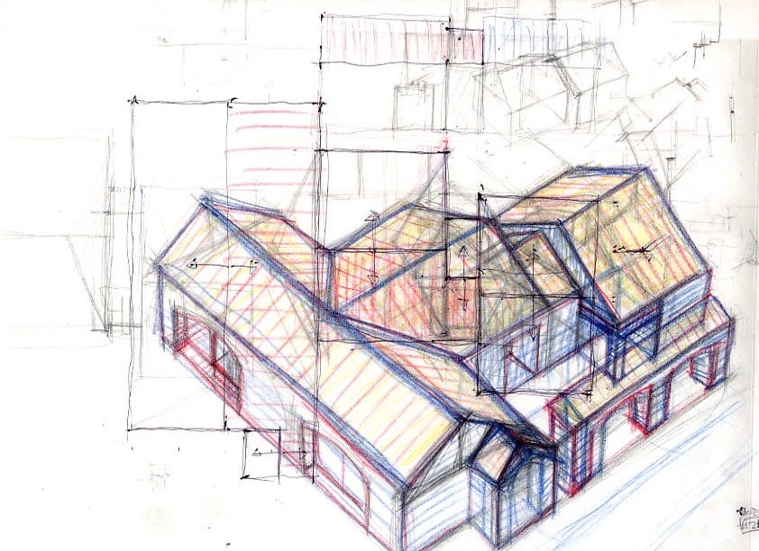 最終的に竣工した家の風貌とは随分とかけ離れた様相を呈しているのだけれど、紛れもなく我々が施主に提案した最初の案になる。