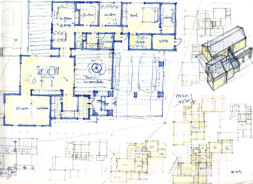 僕にも建築的な野望はあり、実現したいプランやデザインがある。このプロジェクトが始動した当初、僕が良いと思う建築を実現させようと目論んでいた。施主の想いや希望を僕なりの解釈で空間に翻訳し建築化することを。
